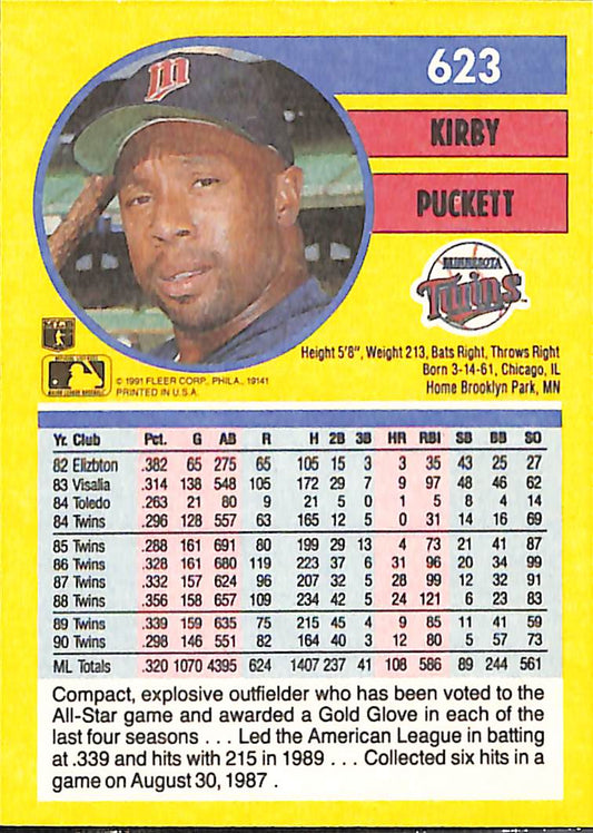 1991 Fleer Kirby Puckett MLB Baseball Error Card #623 - Error Card - Mint Condition