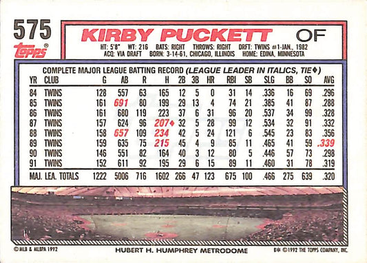 1992 Topps Kirby Puckett MLB Baseball Error Card #575 - Error Card - Mint Condition