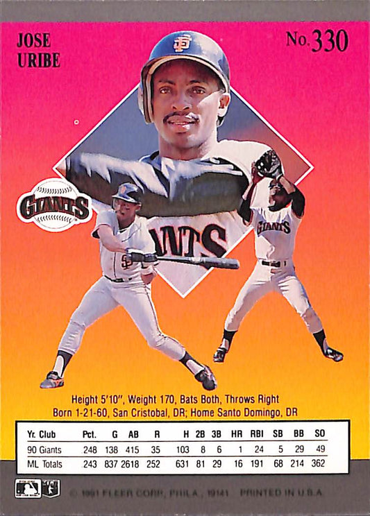 1991 Fleer Ultra Jose Uribe Double Error MLB Baseball Card #330 - Double Error Card - Mint Condition