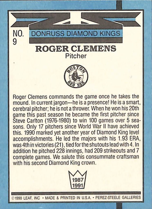 1990 Donruss Diamond Kings Roger Clemens Baseball Error Card #9 - Error Card - Mint Condition