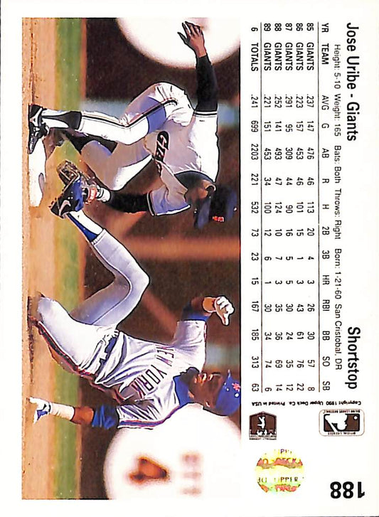 1990 Upper Deck Jose Uribe Baseball Error Card #188 - - Error Card - Mint Condition