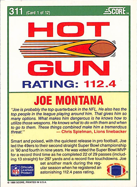 1990 Score Joe Montana Hot Gun Football Card #311 - Mint Condition