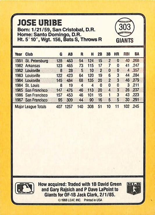 Collection: Jose Uribe Baseball Collector Cards In Stock and in Mint Condition