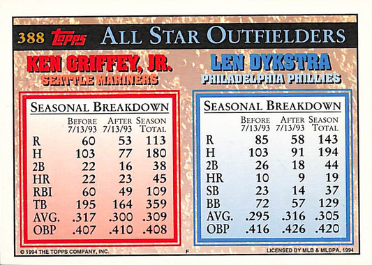 1994 Topps Ken Griffey Jr. - Len Dykstra MLB Baseball Card #388 - Mint Condition