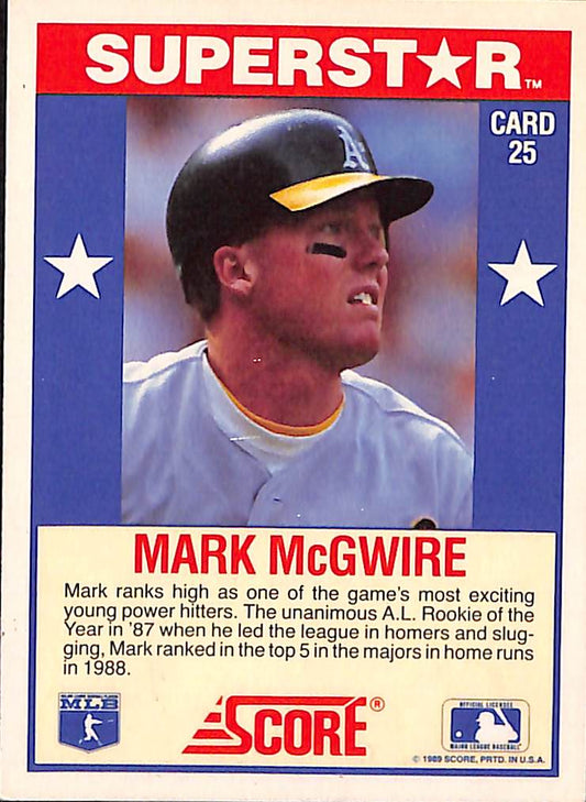 1989 Score Mark McGwire Baseball Card #25 - Mint Condition