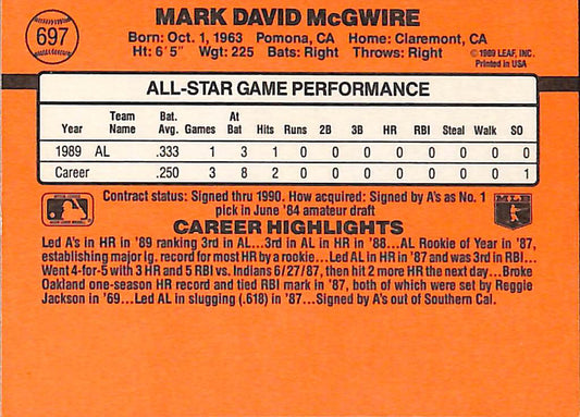 1990 Donruss All-Star Mark McGwire Baseball Card #697 - Mint Condition
