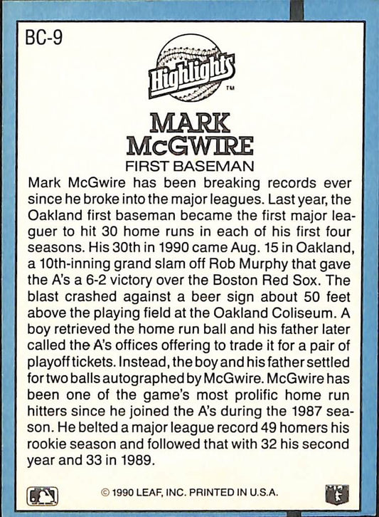 1991 Donruss Mark McGwire Baseball Card #BC9 - Mint Condition