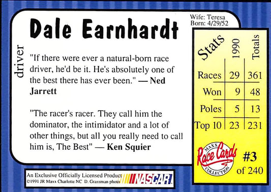 1991 Dale Earnhardt NASCAR Drivers Card #3 - Vintage - Mint Condition
