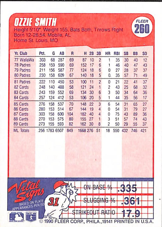 1990 Fleer Ozzie Smith MLB Baseball Card #260 - Mint Condition