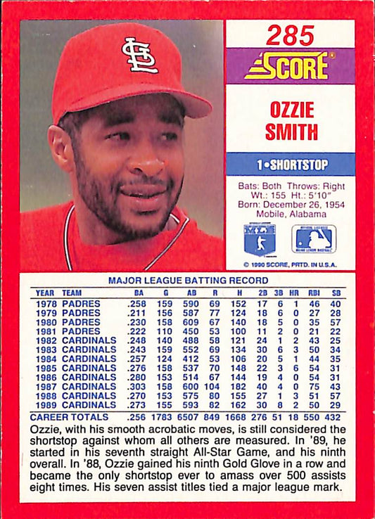 1990 Score Ozzie Smith MLB Baseball Card #285 - Mint Condition