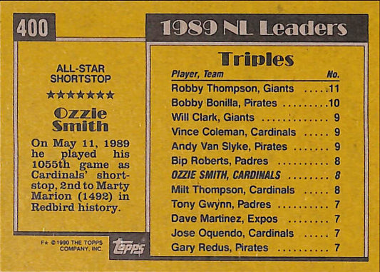 1990 Topps All-Star Ozzie Smith MLB Vintage Baseball Card #400 - Mint Condition