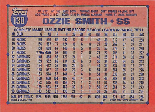 1991 Topps 40 Years Ozzie Smith Baseball Card #130 - Mint Condition