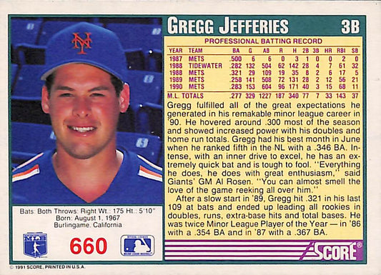 1991 Score Gregg Jefferies MLB Baseball Card #660 - Mint Condition