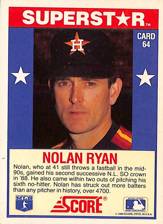 1989 Score Nolan Ryan Astros Vintage Baseball Card #64 - Mint Condition