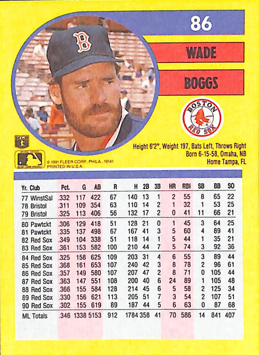 1990 Fleer Wade Boggs Baseball Card #86 - Mint Condition