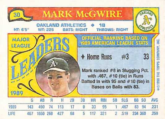 1990 Topps Mini Mark McGwire Baseball Card Mini #30 - Mint Condition