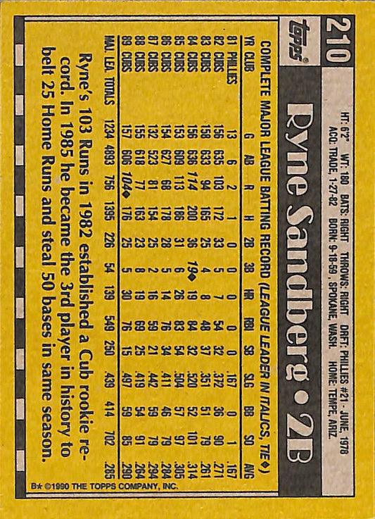 1990 Topps Ryne Sandberg Baseball Card #210 - Mint Condition