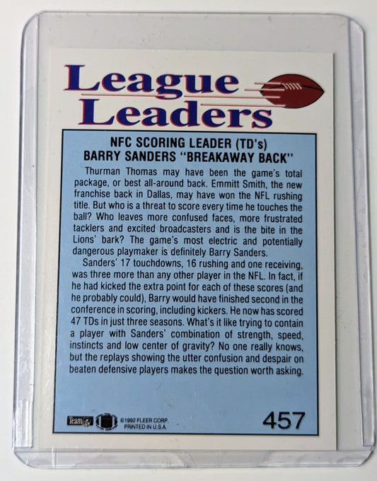 1992 Fleer Barry Sanders leader Football Card #457 - Mint Condition