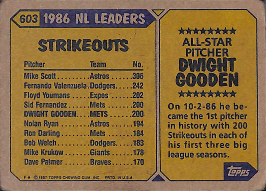 1987 Topps All-Star Dwight Gooden MLB Vintage Baseball Card #603 - Ok Condition