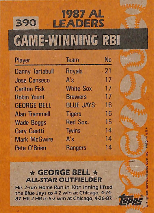 1988 Topps All-Star Jorge - George Bell MLB Vintage Baseball Player Card #390 - Mint Condition