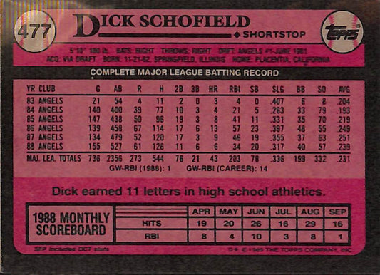1989 Topps Dick Schofield Vintage MLB Baseball Card #477 - Mint Condition