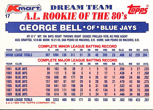 1989 Topps Dream Team George Bell MLB Vintage Baseball Player Card #17 - Mint Condition