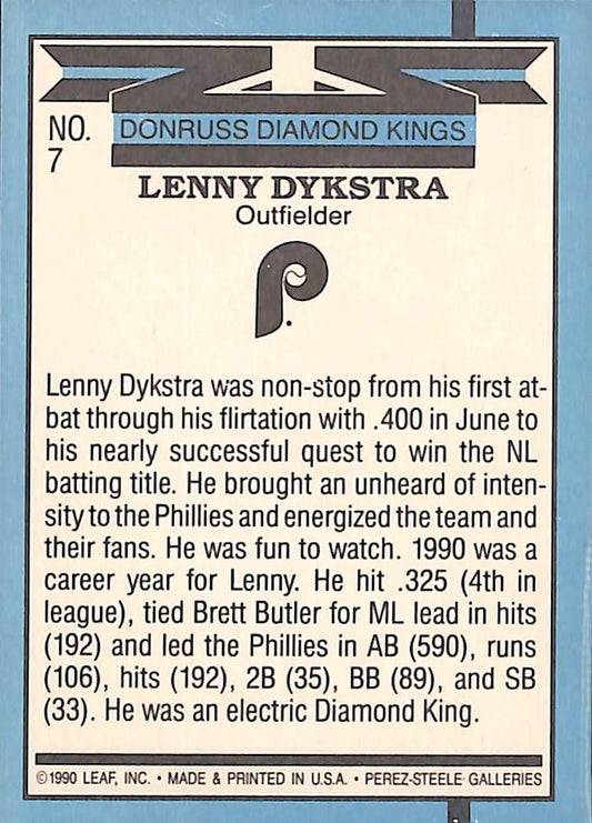 1990 Donruss Diamond Kings Len Dykstra MLB Baseball Card #7 - Mint Condition