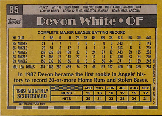 1990 Topps Devon White Vintage MLB Baseball Card #65 - Mint Condition