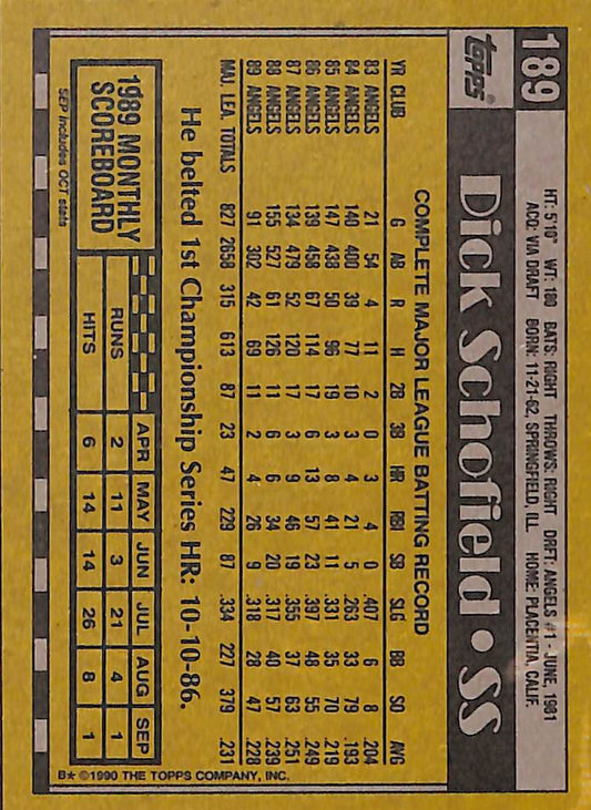 1990 Topps Dick Schofield Vintage MLB Baseball Card #189 - Mint Condition