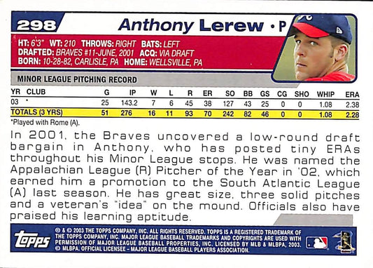 2003 Topps Anthony Lerew MLB Baseball Card #298 - Mint Condition