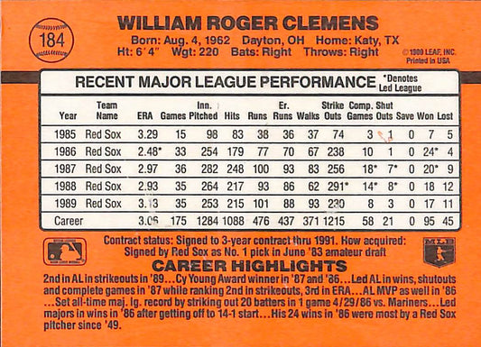 1990 Donruss Roger Clemens MLB Baseball Card #184 - Mint Condition