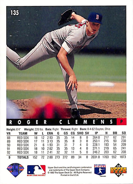 1992 Upper Deck Roger Clemens MLB Baseball Card #135 - Mint Condition