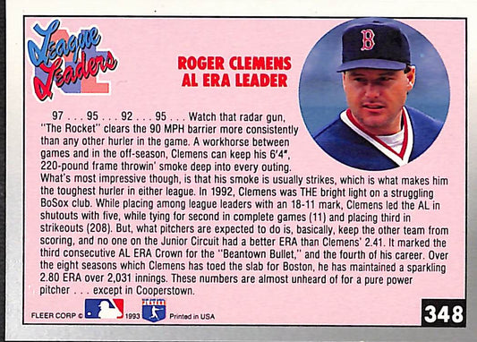 1993 Fleer League Leaders Roger Clemens MLB Baseball Card #348 - Mint Condition