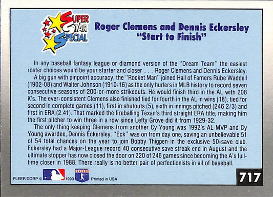 1993 Fleer Roger Clemens and Dennis Eckersley MLB Baseball Card #717 - Mint Condition