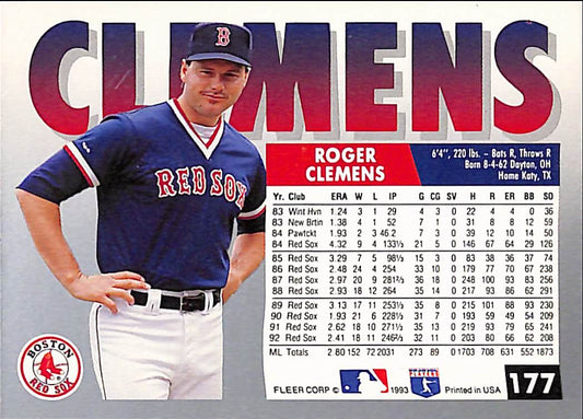 1993 Fleer Roger Clemens MLB Baseball Card #177 - Mint Condition