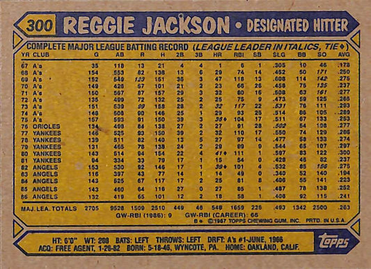 1987 Topps Reggie Jackson Baseball Card #300 - Mint Condition