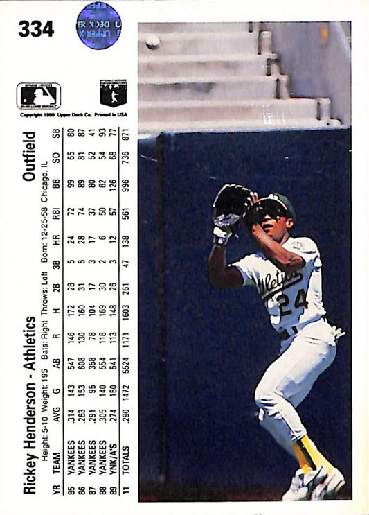1990 Upper Deck Rickey Henderson Baseball Card #334 - Mint Condition