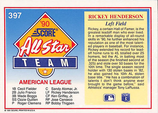 1991 Score Big Head Rickey Henderson Vintage Baseball Card #397 - Mint Condition