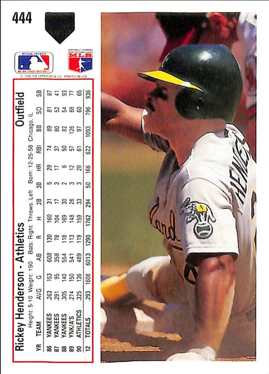 1991 Upper Deck Rickey Henderson Baseball Card #444 - Mint Condition