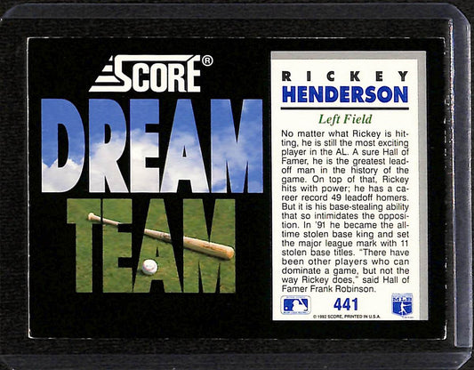 1992 Score Dream Team Rickey Henderson Baseball Card #441 - Mint Condition