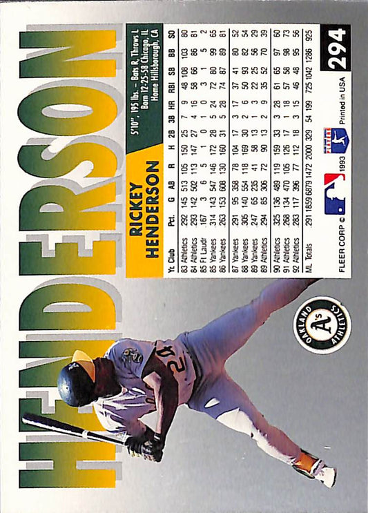1993 Fleer Rickey Henderson Baseball Card #294 - Mint Condition