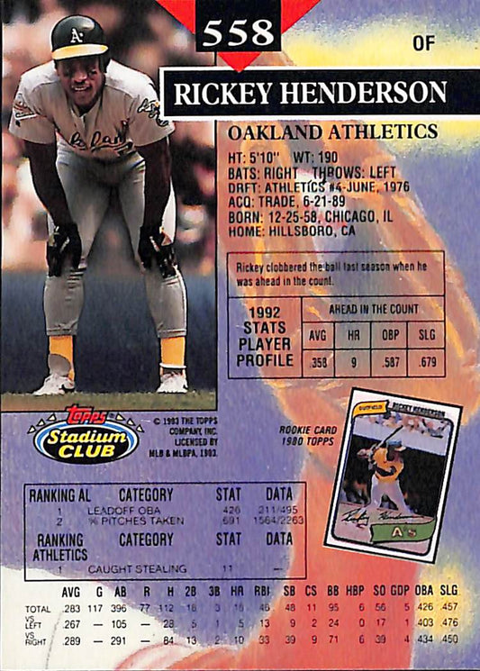 1993 Topps Stadium Rickey Henderson Baseball Card #558 - Mint Condition