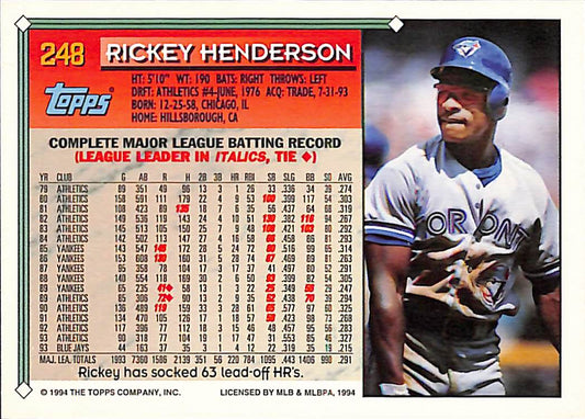 1994 Topps Rickey Henderson Baseball Card #248 - Mint Condition
