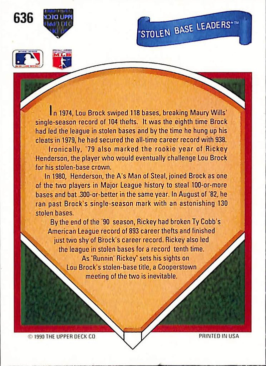1990 Upper Deck Stolen Base Leaders Rickey Henderson Baseball Card #636 - Mint Condition