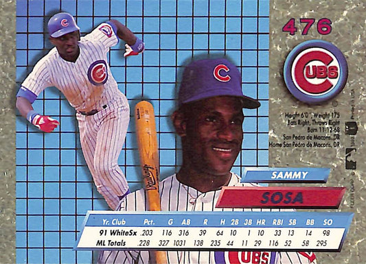 1992 Fleer Ultra Sammy Sosa Baseball Card #476 - Mint Condition