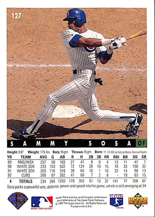 1993 Upper Deck Sammy Sosa MLB Baseball Card #127 - Mint Condition