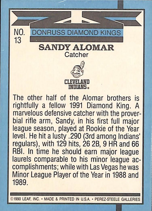 1990 Donruss Diamond Kings Sandy Alomar MLB Baseball Card #13 - Mint Condition