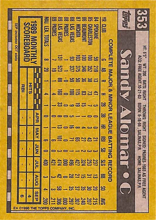 1990 Topps Sandy Alomar Vintage MLB Baseball Card #353 - Mint Condition