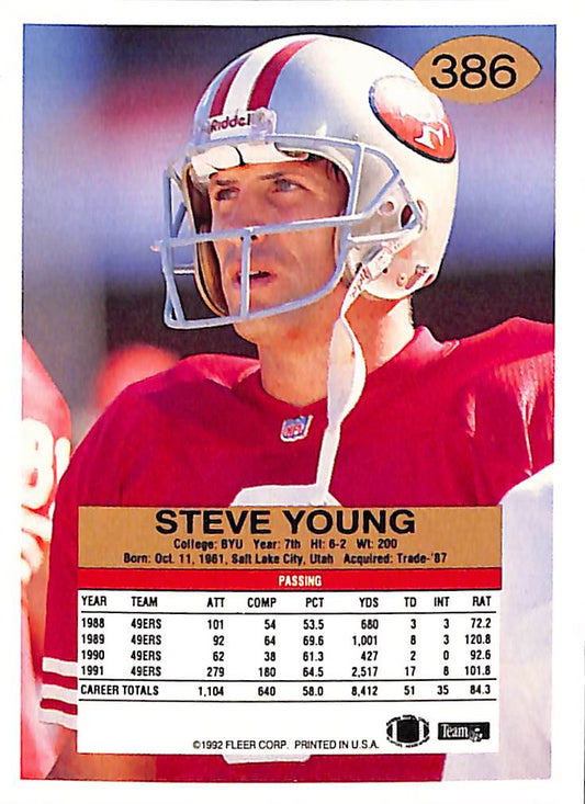 1993 Fleer Steve Young NFL Football Card #386 - Mint Condition