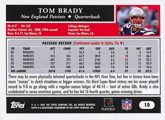 2005 Topps 50 Years Tom Brady Football Card #10 - Pristine Condition